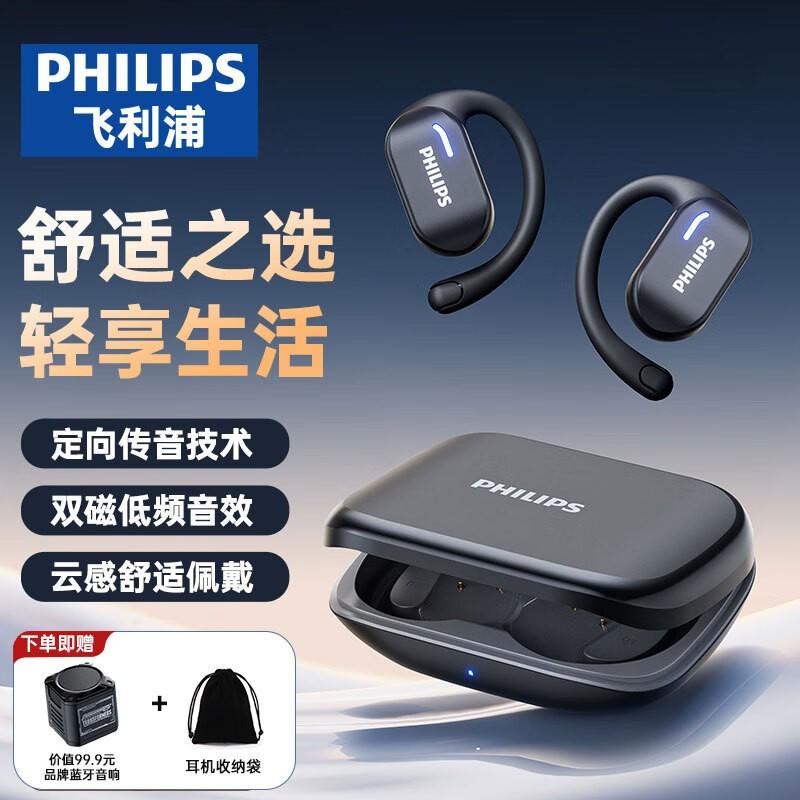 飞利浦TAT1769:钛金属轻盈挂耳式蓝牙耳机,防水降噪运动新宠,千元价位的音质与便捷之选