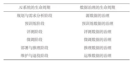 表1 AI系统与数据治理的生命周期对应关系