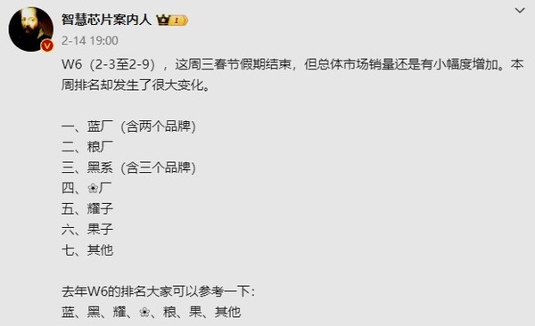 国内手机市场最新周销量份额排名:华为又是第一