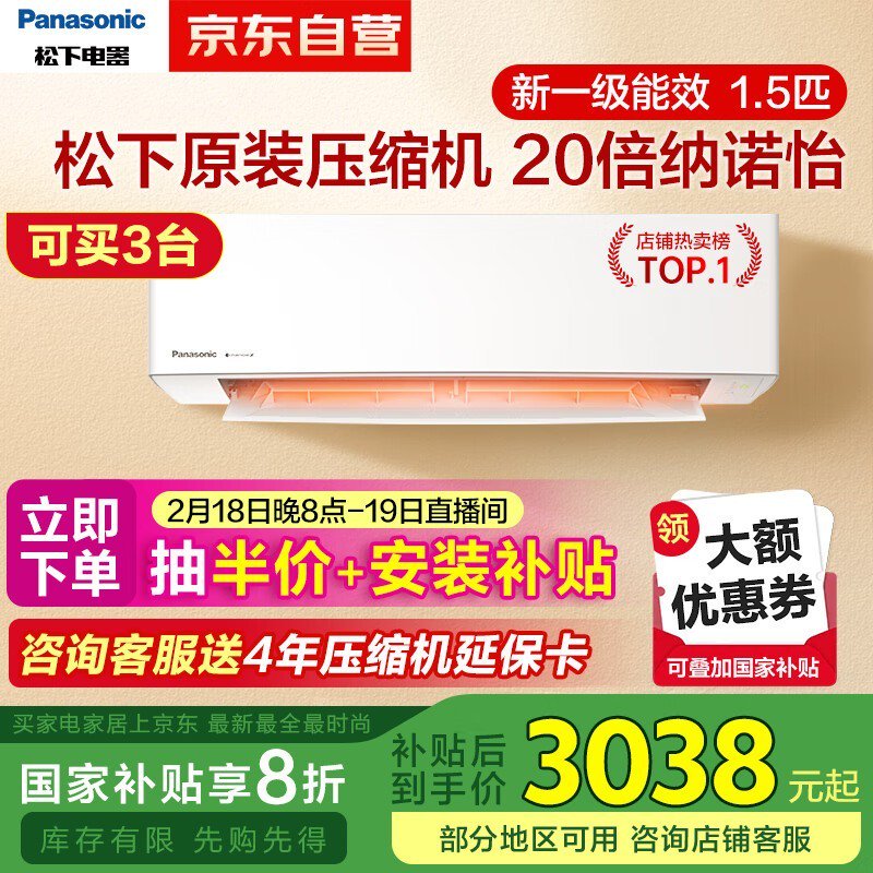 松下ZY35K410壁挂式空调到手价2858元 节能省电智能