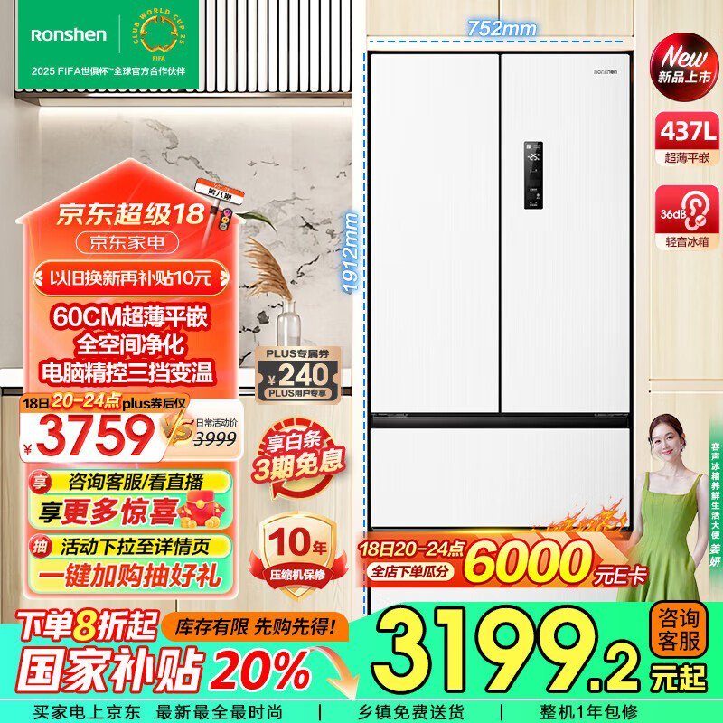 容声法式四开门电冰箱大促销 2775元到手