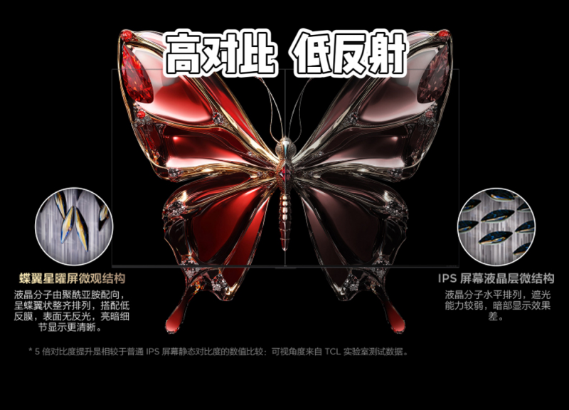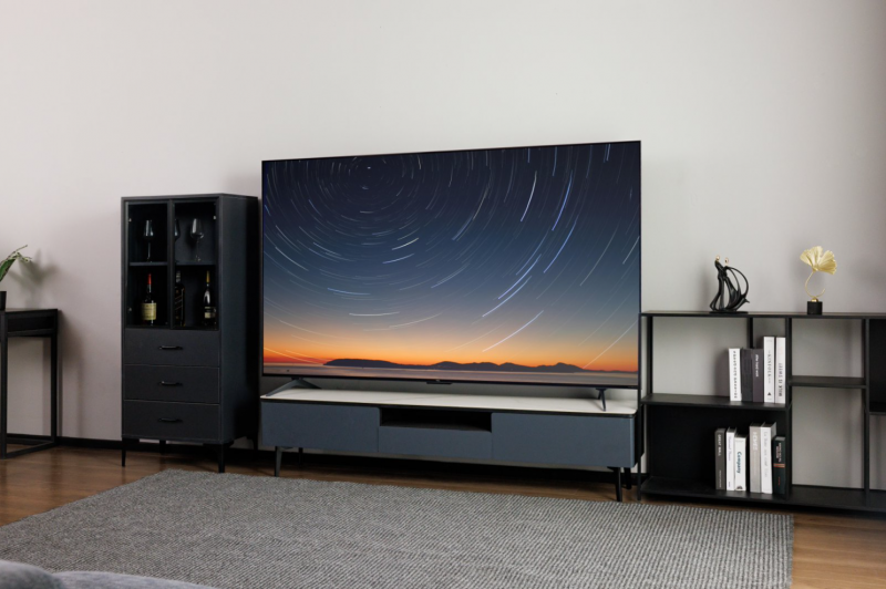 电视画质好不好,屏幕的功劳起码占了一半。因此,这里就不得不顺便说一说它家采用的这块蝶翼星曜屏,也就是升级后的华星HVA屏。原生对比度高达7000:1,这是什么概念?一般来说普通电视用的IPS屏对比度只有1200:1,也就是说它的对比度是普通屏的5倍!并且这块屏幕因为增加了纳米级低反膜,所以遮光性非常好,能够有效减少环境光反射所导致的看不清楚画面的情况,无论是白天的日光亦或是晚上的灯光都不会影响看电视。