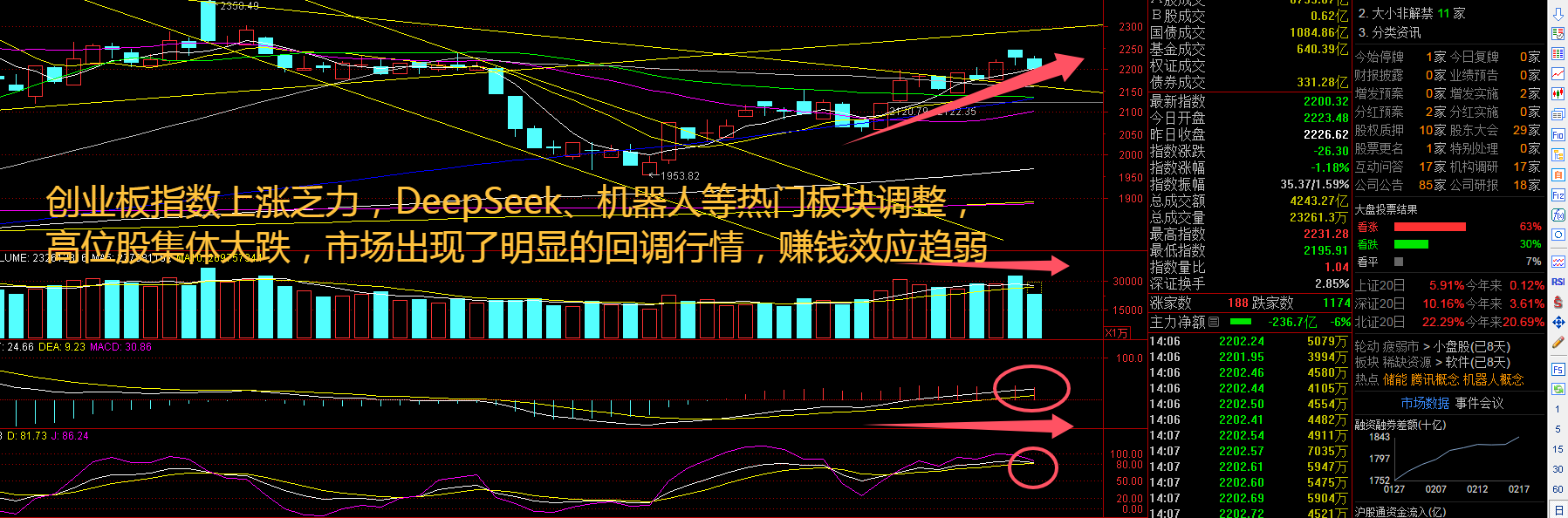 创业板指数周二并未继续大幅度拉升上攻,反而是回到了5日线附近修正,现在最大的问题在于DeepSeek、机器人还在调整,始终没有明显的领军人。今年全球资本流动的天平将向东方倾斜,在外资机构看来,DeepSeek的一鸣惊人、机器人行业的蓬勃发展、稳增长增量政策的逐步推出和显效,快速提升了中国资产的吸引力。中国资产正在吸引全球资金的关注,高盛在最新发布的一份研报中称,今年以来全球对冲基金一直在大幅买入中国股票,多只中国股票ETF规模较去年年底显著增长。接下来注意创业板指数能否在2220点之上稳住。
