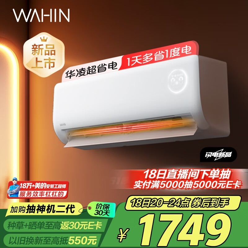 华凌1.5匹一级能效超省电变频空调挂机活动价1347元