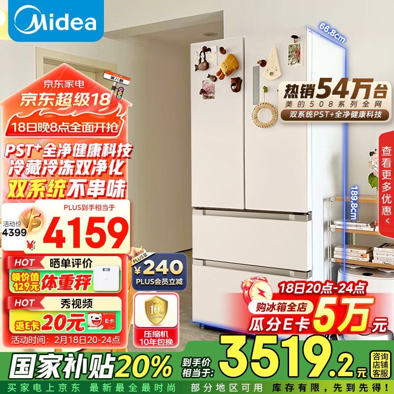 美的多门冰箱2762元!家庭实用之选!