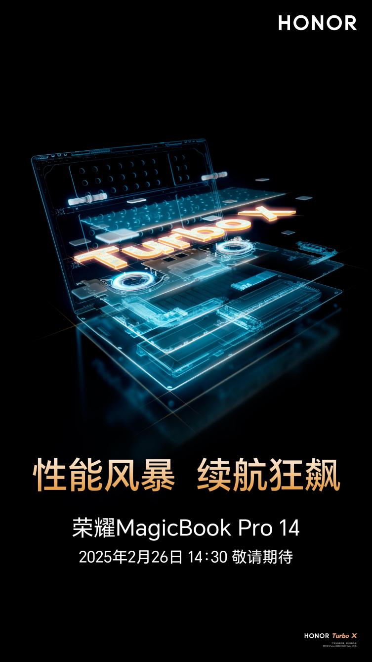 在全新的HONORTurbo X加持下,荣耀MagicBookPro 14还将带来哪些惊喜?2月26日14:30,荣耀笔记本新品发布会准时揭晓。