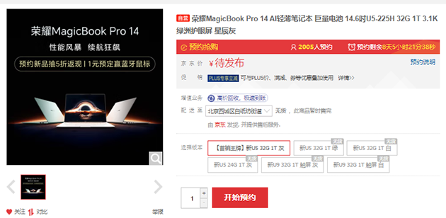 目前,荣耀MagicBook Pro 14已在荣耀商城、各大授权电商、授权零售门店等渠道开启盲约。新品搭载巨量电池,支持12小时真实模拟续航;全新智能散热系统设计,实现静音高性能;旗舰级3.1K OLED绿洲护眼屏,带来健康舒适视觉体验;行业独家黄金智能三天线,支持450米超远联网距离和360°全角度联网。想第一时间入手新机的用户,可以提前开始行动了。