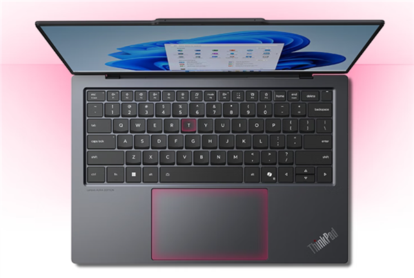 ThinkPad X9 14 Aura AI元启版采用雷霆灰风格机身,配备标志性的ThinkPad小红点呼吸灯,整体设计简洁而富有科技感。
