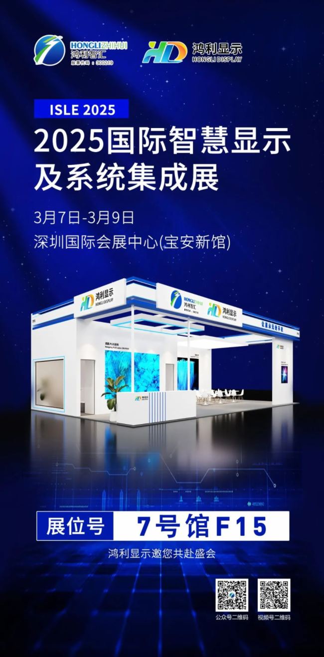 2025 ISLE 国际智慧显示及系统集成展即将于2025年3月7日-9日在深圳举办,鸿利智汇集团旗下子公司广州市鸿利显示电子有限公司(鸿利显示)将携鸿屏·系列 / COB - P0.78、鸿翼·系列 / COB - P1.25、半户外 & 户外 / COB - P1.95等系列直显新品亮相,为客户提供高性能和个性化的LED显示屏综合解决方案。公司展位号:7号馆F15,欢迎莅临洽谈合作。