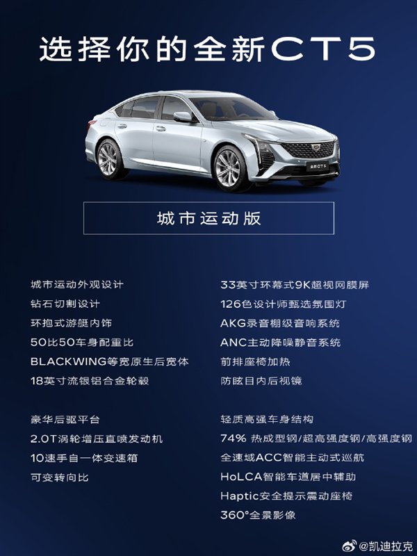 据悉,全新CT5基于市场反馈进行了配置调整,精简为城市运动版和赛道性能版,并提供巅峰赛道选装包。