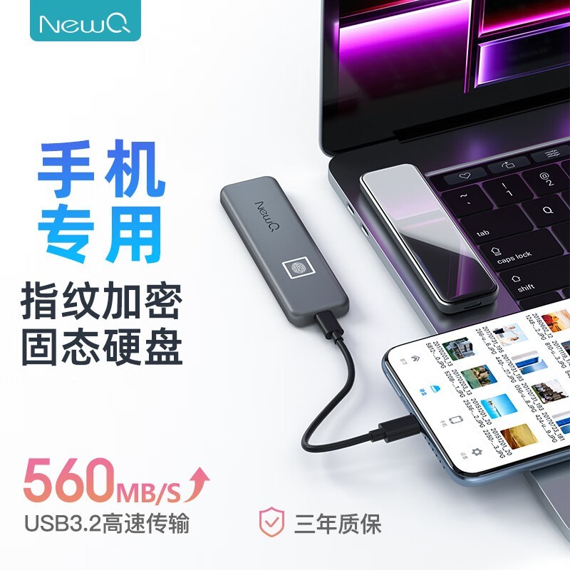 NEWQ指纹加密固态移动硬盘1T,现在只需529元即可入手
