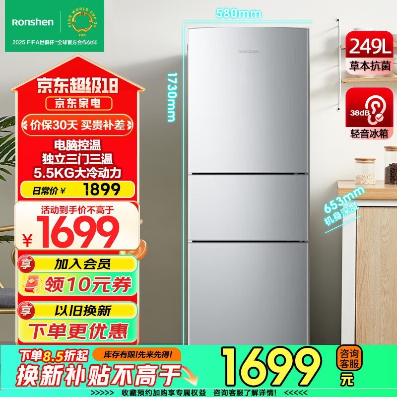 容声BCD-249WD1N三开门冰箱只要1079元