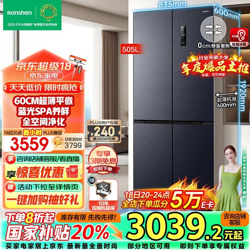 容声蓝光养鲜平嵌系列冰箱2800元 半价抢购!