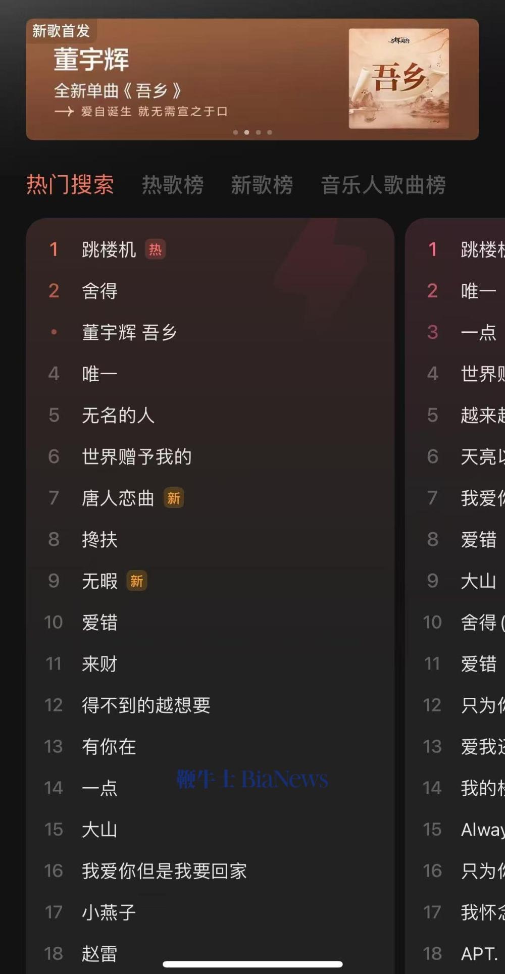 目前,该歌曲在汽水音乐App里已经登上热门搜索,排第三名。