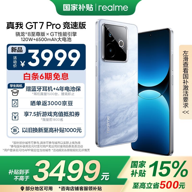 realme GT7 Pro 竞速版 5G手机16GB+1TB 海王星仅售3469元!