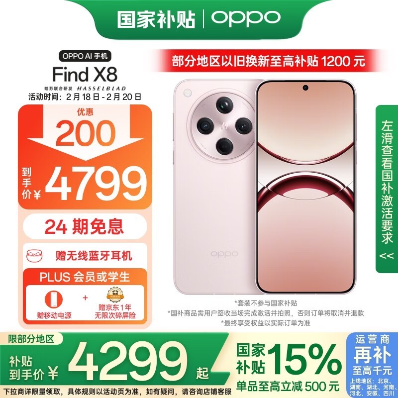 OPPO Find X8 5G手机16GB+512GB 气泡粉4255元到手