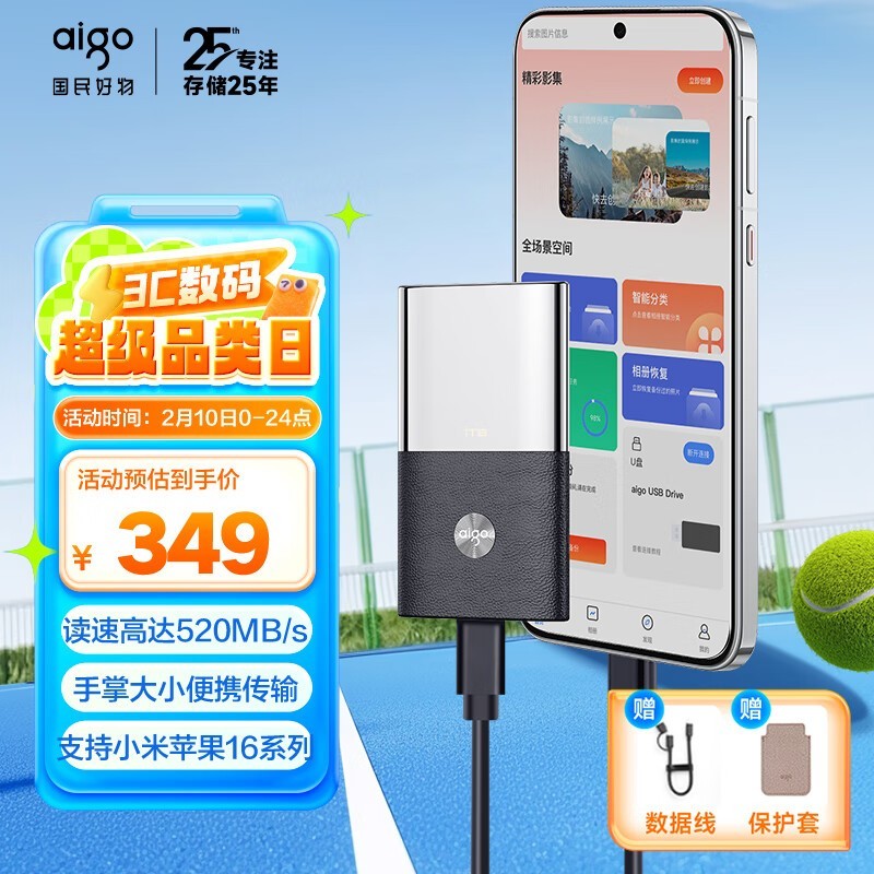 爱国者1TB移动固态硬盘特价327元 支持手机直连