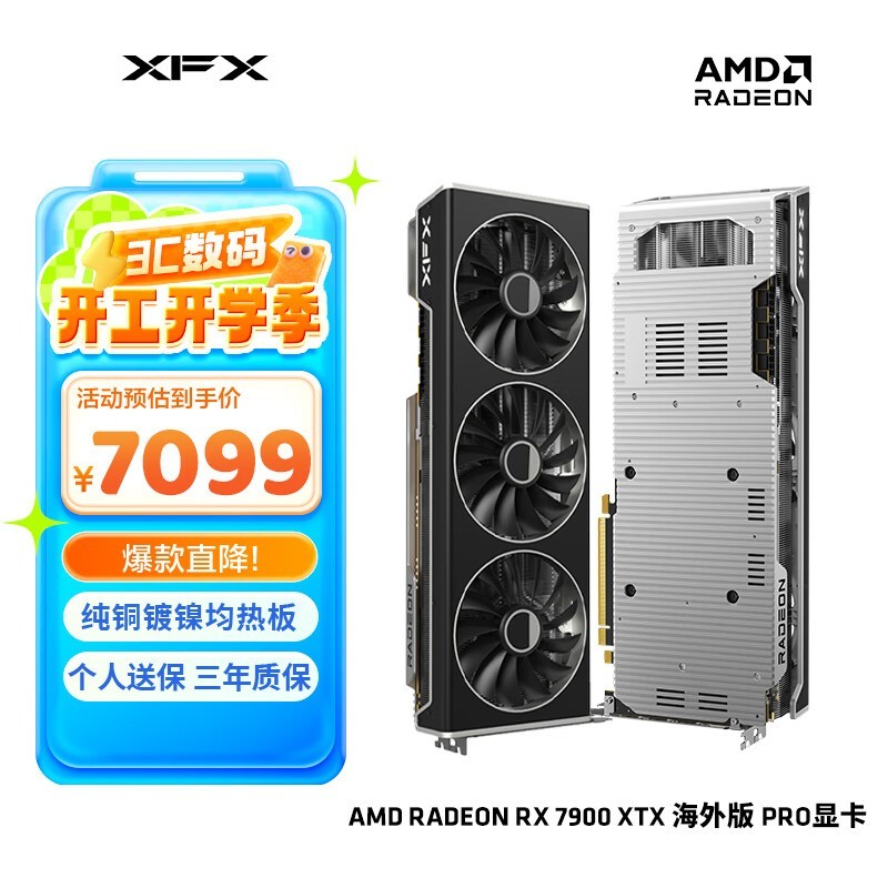 讯景 RX 7900 XTX 海外版Pro 显卡 活动价7099元 性能强劲 性能强悍