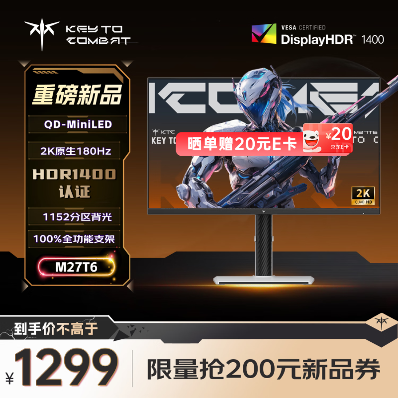 KTC 27英寸QD-MiniLED显示器秒杀价1279元!电竞玩家必备神器