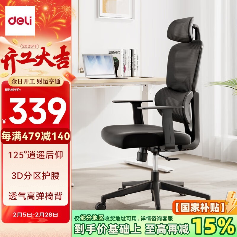 德力人体工学电脑椅3D腰靠超值价276元