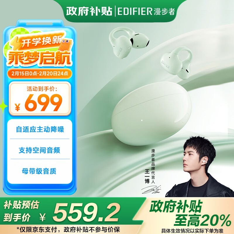 漫步者LolliClip智能耳夹式开放式无线蓝牙耳机国家补贴限时优惠