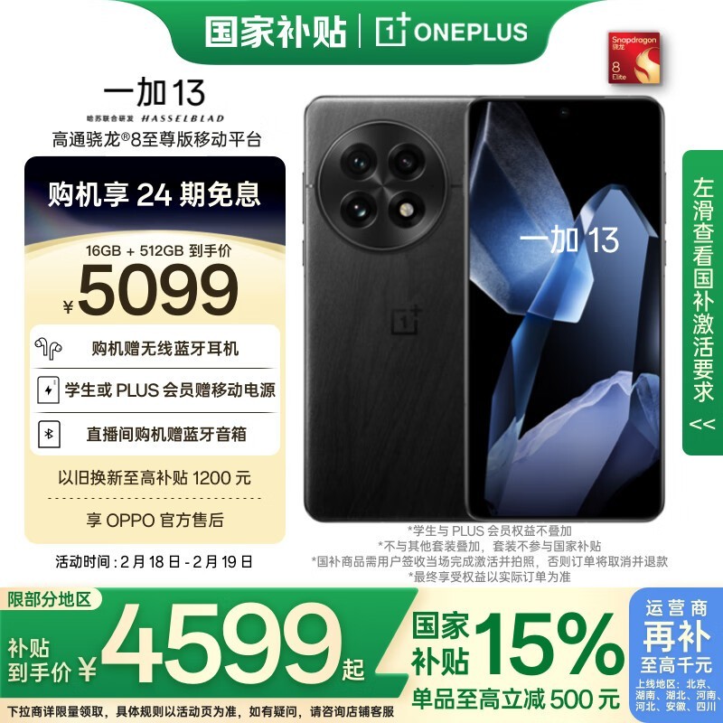 一加 OnePlus 国补 16GB+512GB 骁龙8至尊版仅4173元