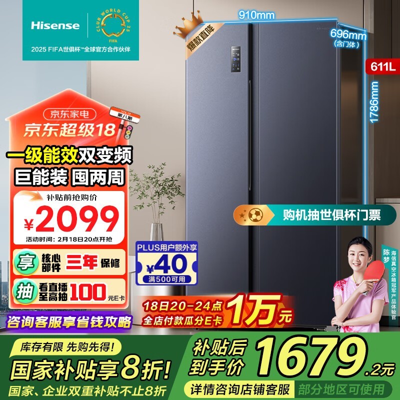 海信 BCD-611WFK1DPQ冰箱优惠活动来袭!