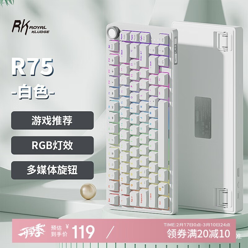 RK ROYAL KLUDGE R75Pro键盘促销119元!