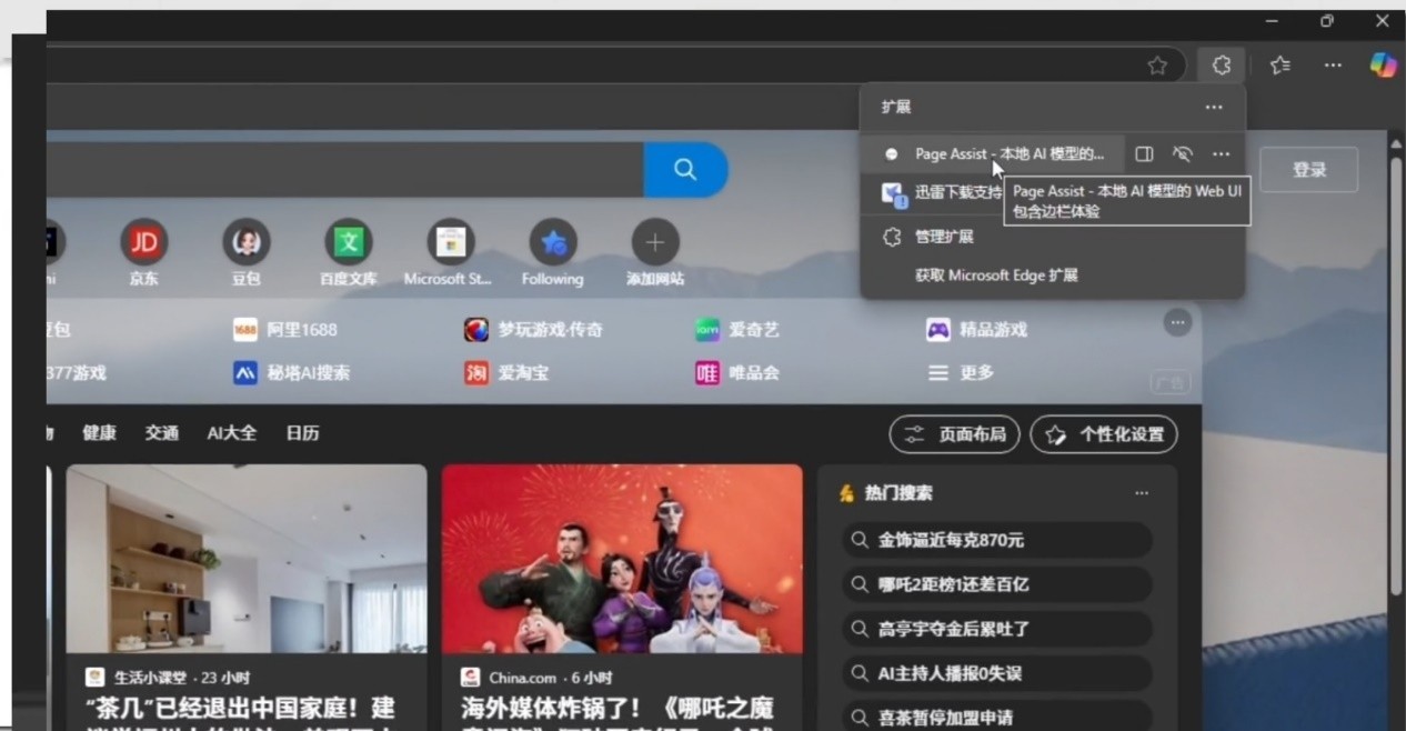5、完成后检查ollama在后台运行后,在浏览器里安装PageAssist插件即可正常运行deepseek模型,至此你的deepseek本地部署完成,开启你的专属AI助手吧。