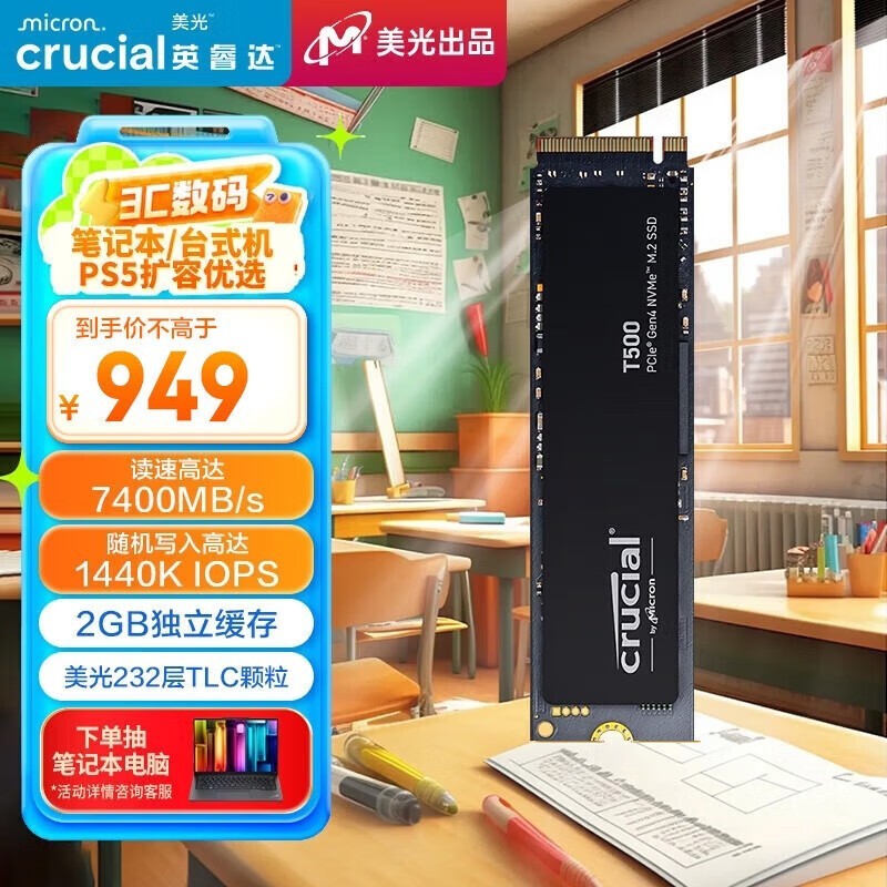 京东秒抢购!Crucial T500 Pro NVMe M 固态硬盘 2TB只要829元!