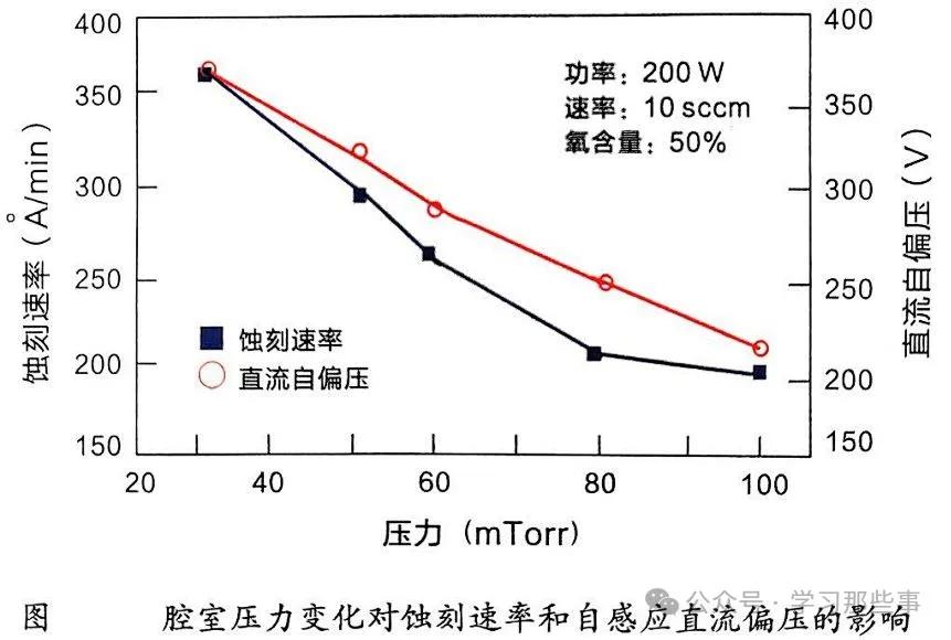 工作压力:离子的平均自由程和平均寿命随着压力的增加而下降,导致离子含量降低和直流偏压增加。蚀刻速率随压力的增加而降低的现象可以通过入射离子方向性的降低来解释。通过调整工作压力,可以控制微沟槽蚀刻的深度和侧壁坡度。
