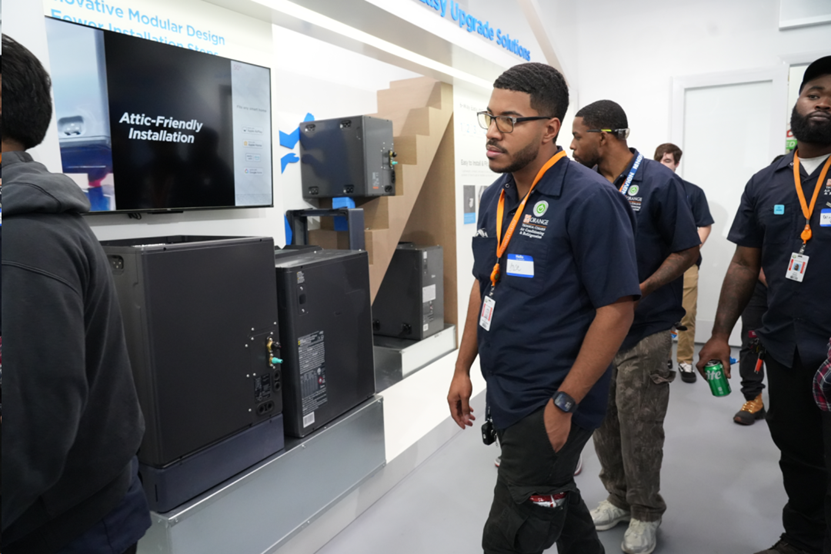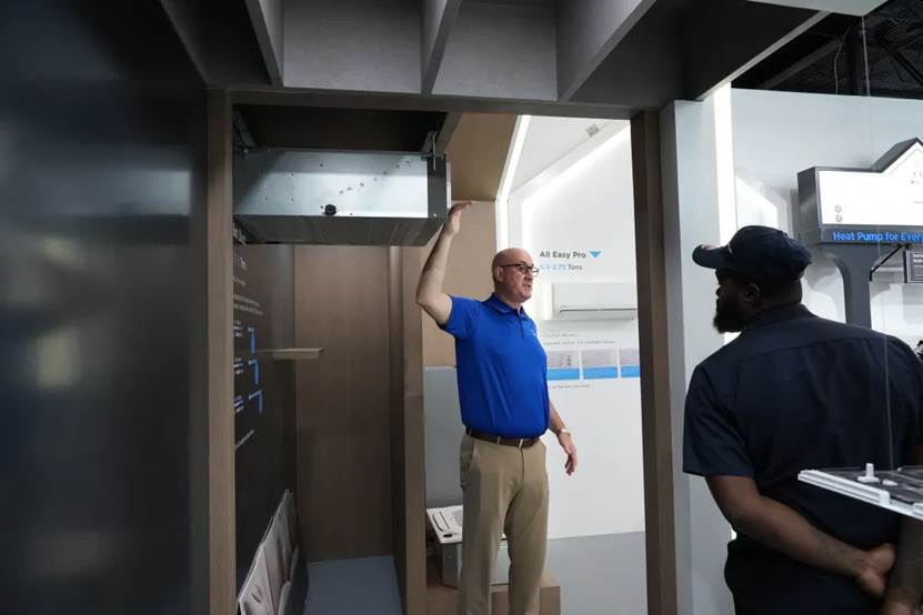 延续美的空调旗舰展厅综合性销售与服务枢纽的定位,佛罗里达旗舰展厅在产品销售和热泵技术展示之余,还具备了技术培训与行业合作的功能。开业当天,展厅接待了奥兰多职业培训学校Orange Technical College的学生团队,未来也将为更多本地安装工和学生提供安装和维修实操培训课程,为本地行业人才储备贡献力量。