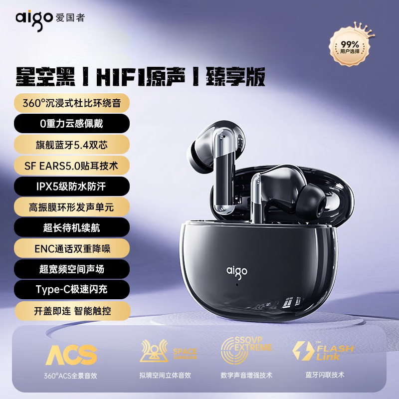 2024新款爱国者TJ95:星空黑HIFI半入耳耳机,5.4蓝牙版,防水便携,音质享受仅售55元