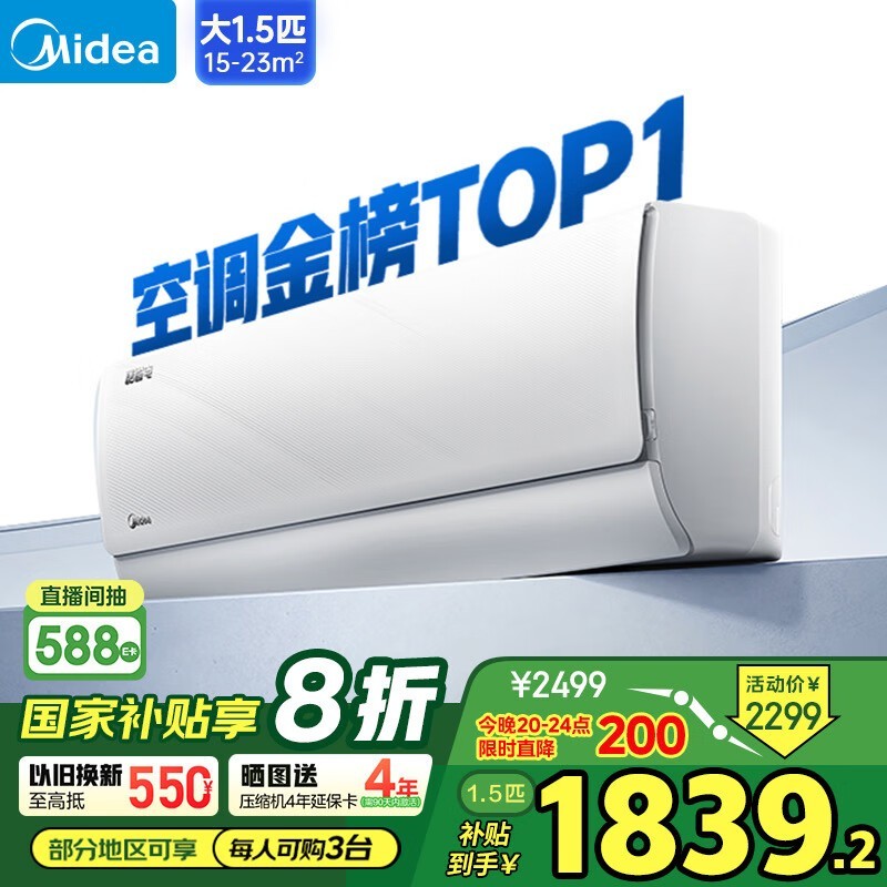 美的新一级能效壁挂式空调仅1751元!