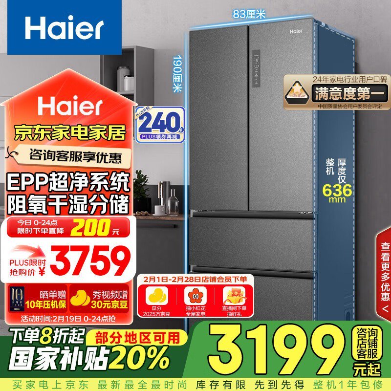 海尔法式多门冰箱2722元 海尔超净系列
