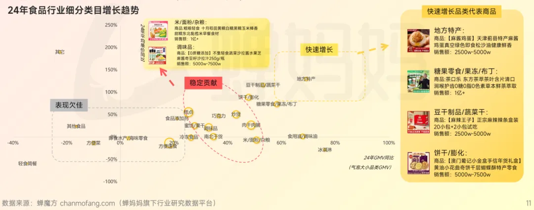 快速增长品类以地方特色表现最佳,麻酱鸡蛋为代表产品