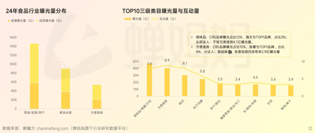 食品行业侧重场景化内容营销,调味品品类品牌推广力度大
