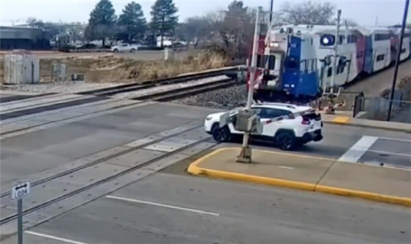 据美国福克斯新闻报道,此事发生在犹他州,道路监控视频显示,铁路道口红灯闪烁、升降杆落下,这意味着火车即将通过。
