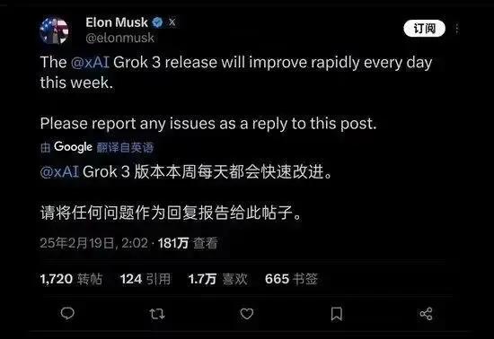 值得一提的是,马斯克在社交媒体上表示,当前的 Grok 3 仅是测试版,完整版将在未来几个月推出,并邀请用户反馈使用问题。