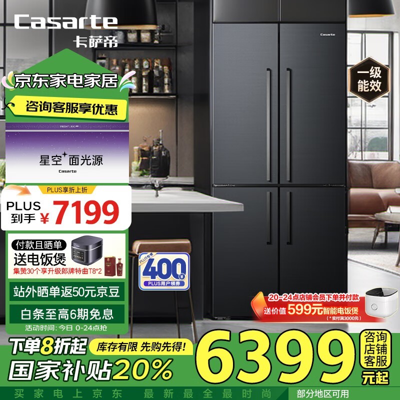 卡萨帝揽光星空系列四门冰箱 国家补贴8折 4759元到手