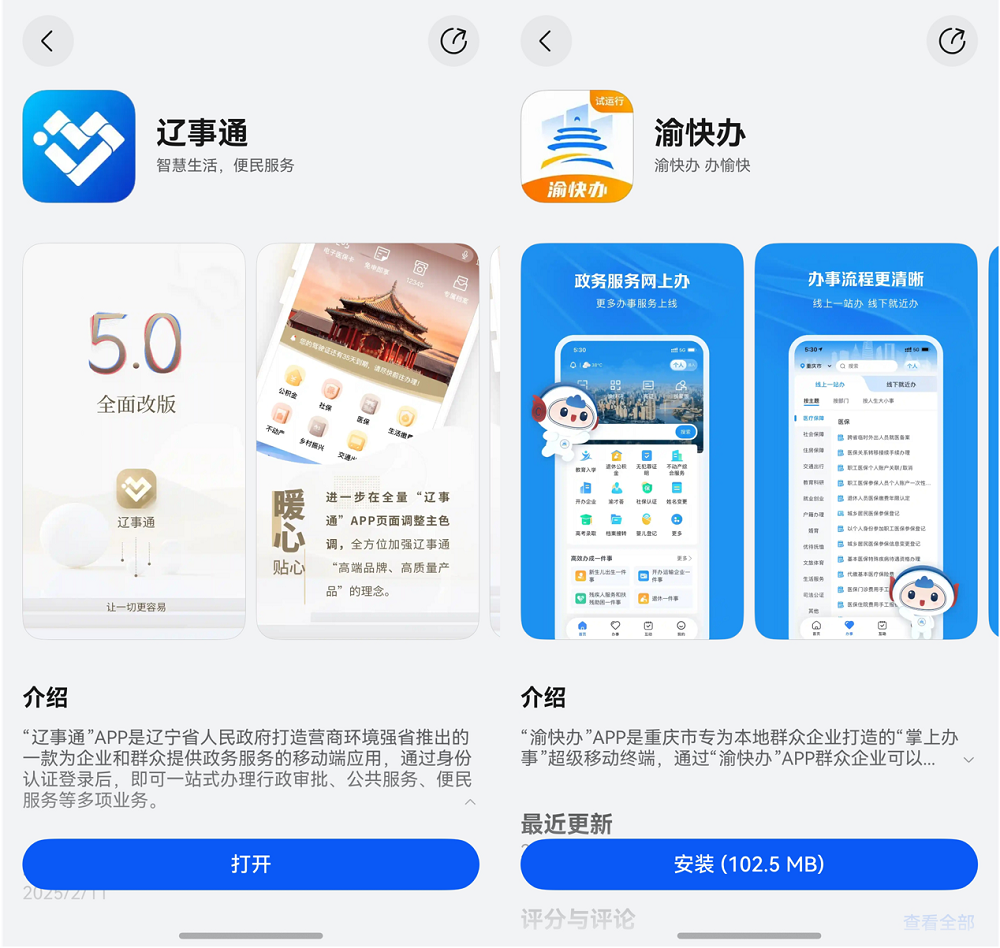 除了辽事通和渝快办以外,当前浙江、广东、广西、山东、湖南、江西、贵州、吉林等多20多个省市启动政务App鸿蒙化进程。政务App的鸿蒙化浪潮,本质是数字政府建设从“功能上线”向“体验重构”的跨越。传统政务平台常受限于系统碎片化、数据孤岛等问题,而鸿蒙系统凭借统一底座,可打通数据接口,让“减证便民”真正落地。这场由技术自主创新驱动的政务变革——更智能、更安全、更人性化的公共服务,将成为数字中国建设的鲜明注脚。