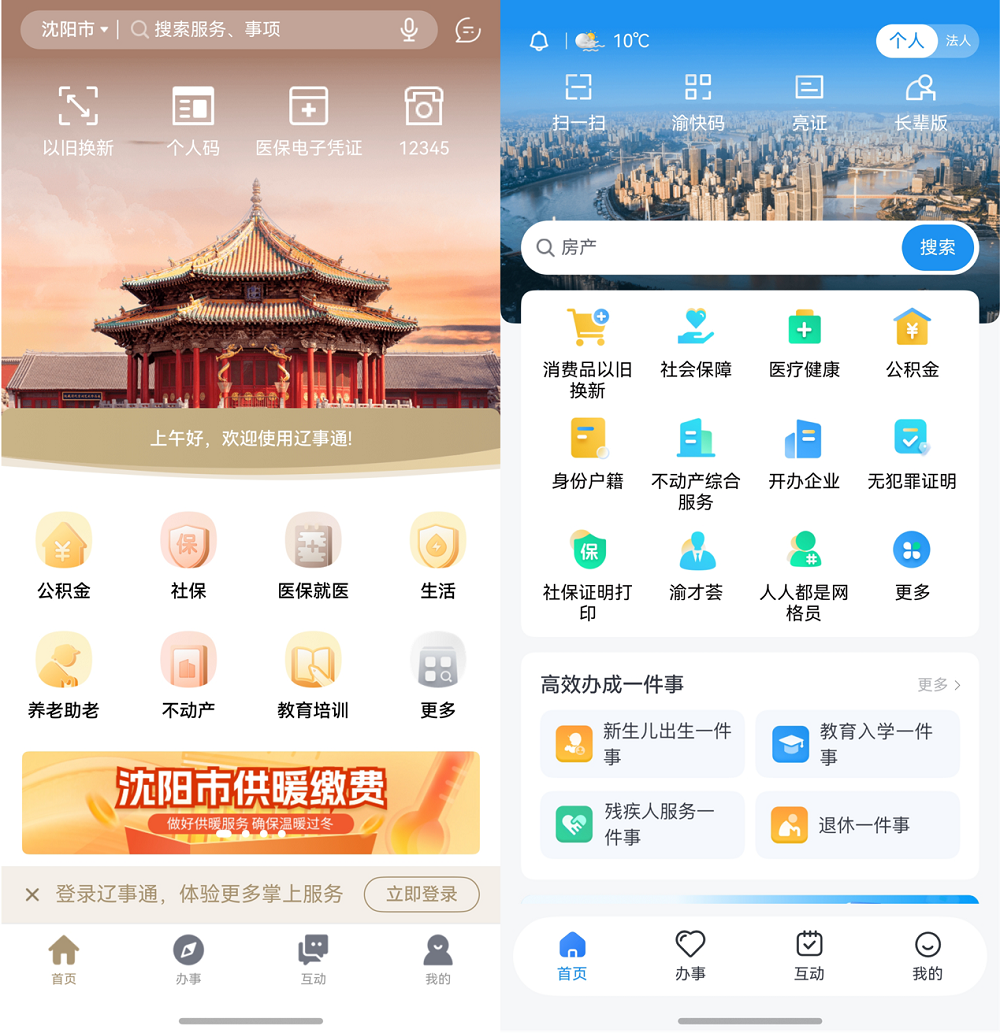 作为地方政务服务的核心入口,“辽事通”App发布5年累计访问量突破150亿次,平均每月有300余万人在线办理业务,堪称“辽宁省企业群众移动办事的总门户”。“渝快办”则是重庆市着力建设的一体化政务服务平台,注册用户已达2600万,涵盖行政审批、社保医疗等近百项服务。