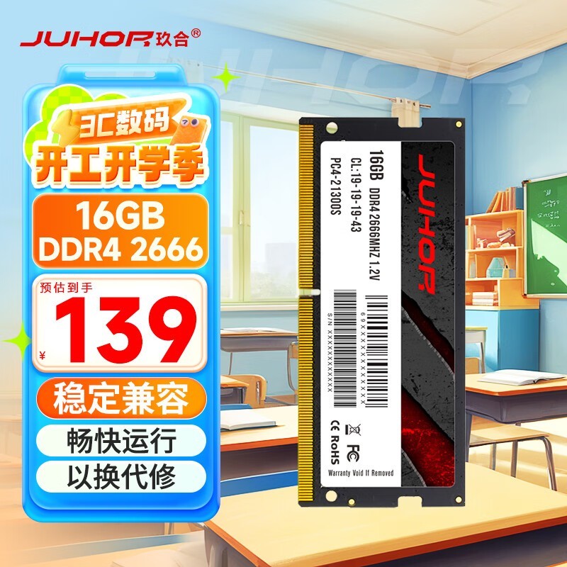 玖合16GBDDR42666笔记本内存条促销仅135元