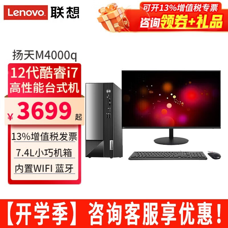 联想扬天M4000q台式电脑套装酷睿i7-12700处理器23.8英寸显示器