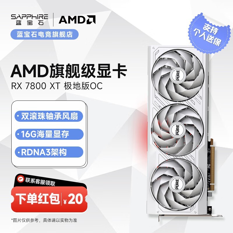 蓝宝石RX7800XT16G极地版显卡强劲性能3419元包邮