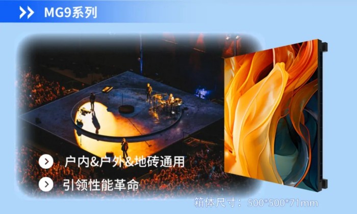 步入新亚胜展位,最为吸人眼球的高清主屏由MG系列打造而成。作为新亚胜的王牌产品,MG系列不仅具备画质细腻、色彩对比度高、显示流畅稳定的优点,还拥有“一屏通用,一屏百变”的卓越特性,能够实现户内、户外、地砖、天幕、球场屏等多种场景通用,通过组合MG创意延伸系列、MG Cube系列,还能打造出数字、字母、图形等百变创意造型屏。