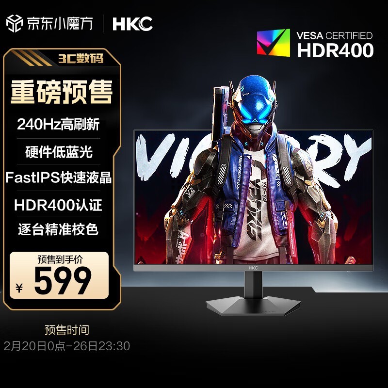 HKC猎鹰G24H3S显示器,240Hz高刷仅599元!