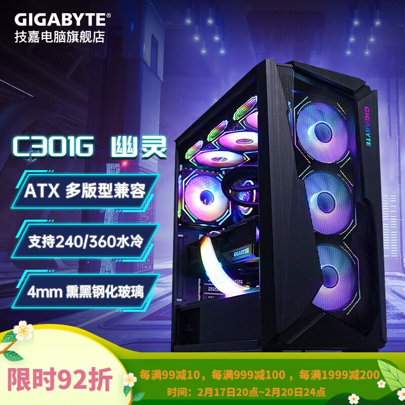 技嘉幽灵C301G中塔机箱全景侧透京东满减优惠