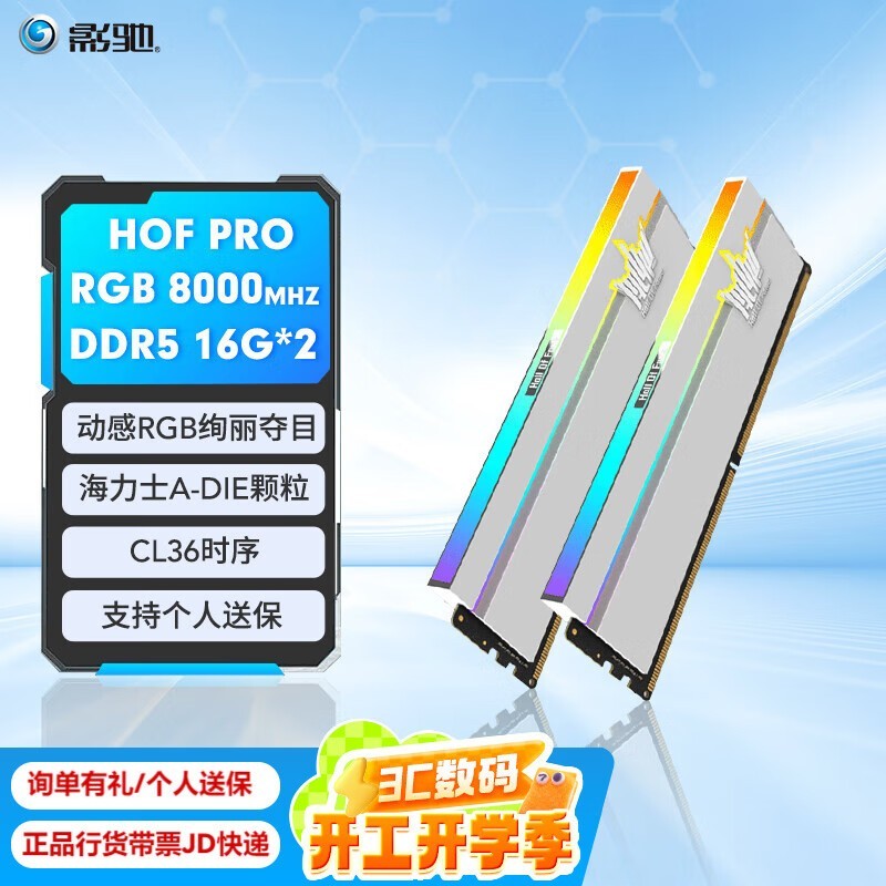 影驰HOF PRO DDR5 8000MHz内存条32GB京东优惠至1199元