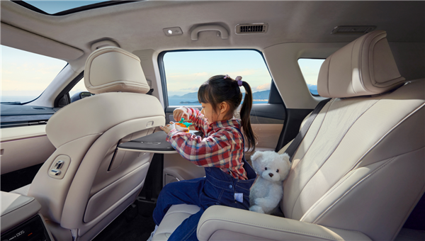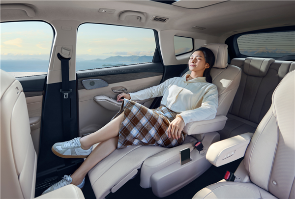 座椅采用了2+2+2六座布局,配备零重力座椅(和问界M7 、BBA同款座椅供应商延锋),一二排拥有舒云软头枕,还配备一键舒享多功能扶手和高级麂皮绒顶棚。